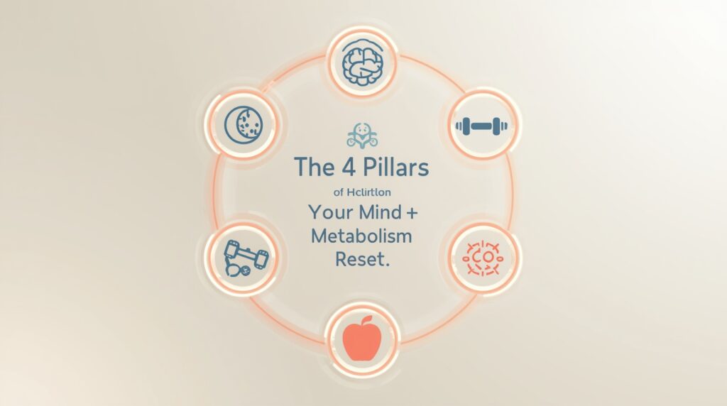 So here’s the fix: a simple, science-based Mind + Metabolism Reset Plan that aligns your sleep, nutrition, focus, energy, fitness, and mindset in just 4 weeks!