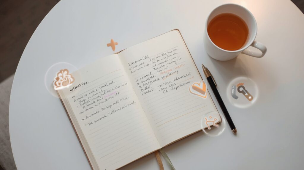 2. Reflect and relax: write one thing you’re grateful for, stretch lightly, breathe deep.