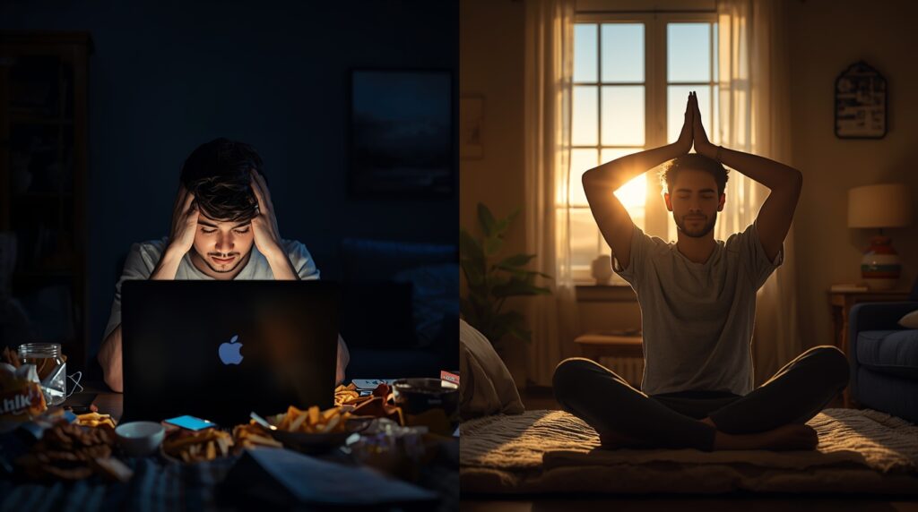 Late-night scrolling, stress eating, caffeine highs, and endless sitting — all of this confuses your body’s internal clock. The result?