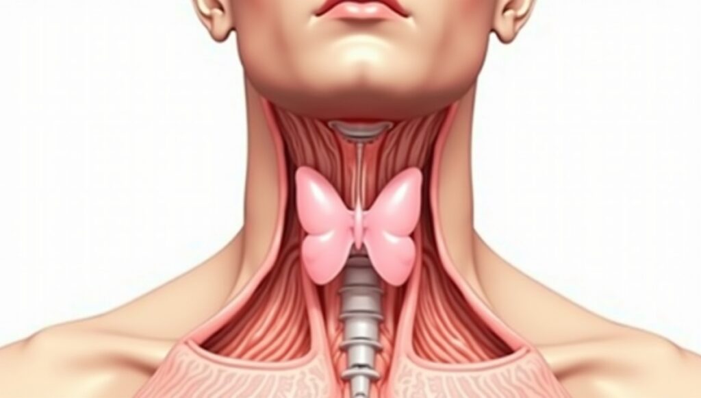 Right in your neck, there’s a small, butterfly-shaped gland called the thyroid gland.